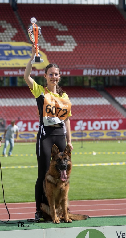 Luisa kann seit diesem Jahr altersbedingt nicht mehr an der DJJM starten, wurde jedoch am Sonntag für ihre Erfolge und ihr Engagement in der Saison 2024 geehrt. Sie belegte den 2. Platz im Leistungsbereich und war die 4. aktivste U21 Jährige im Universalbereich des Vereins für deutsche Schäferhunde.